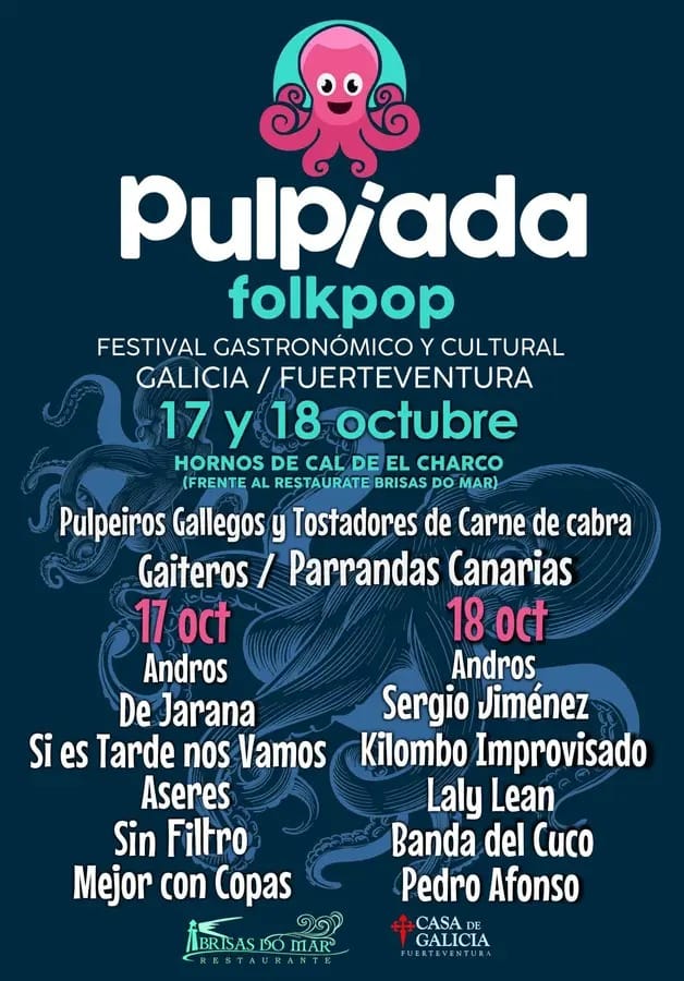El viernes 17 de octubre tenemos una cita muy especial en los Hornos de Cal de El Charco (Puerto del Rosario) con la Pulpiada Folkpop, un festival gastronómico y cultural que une lo mejor de Galicia y Fuerteventura.