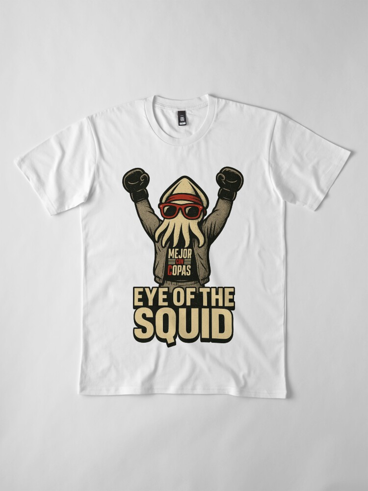 Inspirada en la icónica escena de Eye of the Tiger pero con tentáculos, actitud y mucho rock, esta camiseta es una declaración de intenciones para los que luchan cada día con humor y estilo.